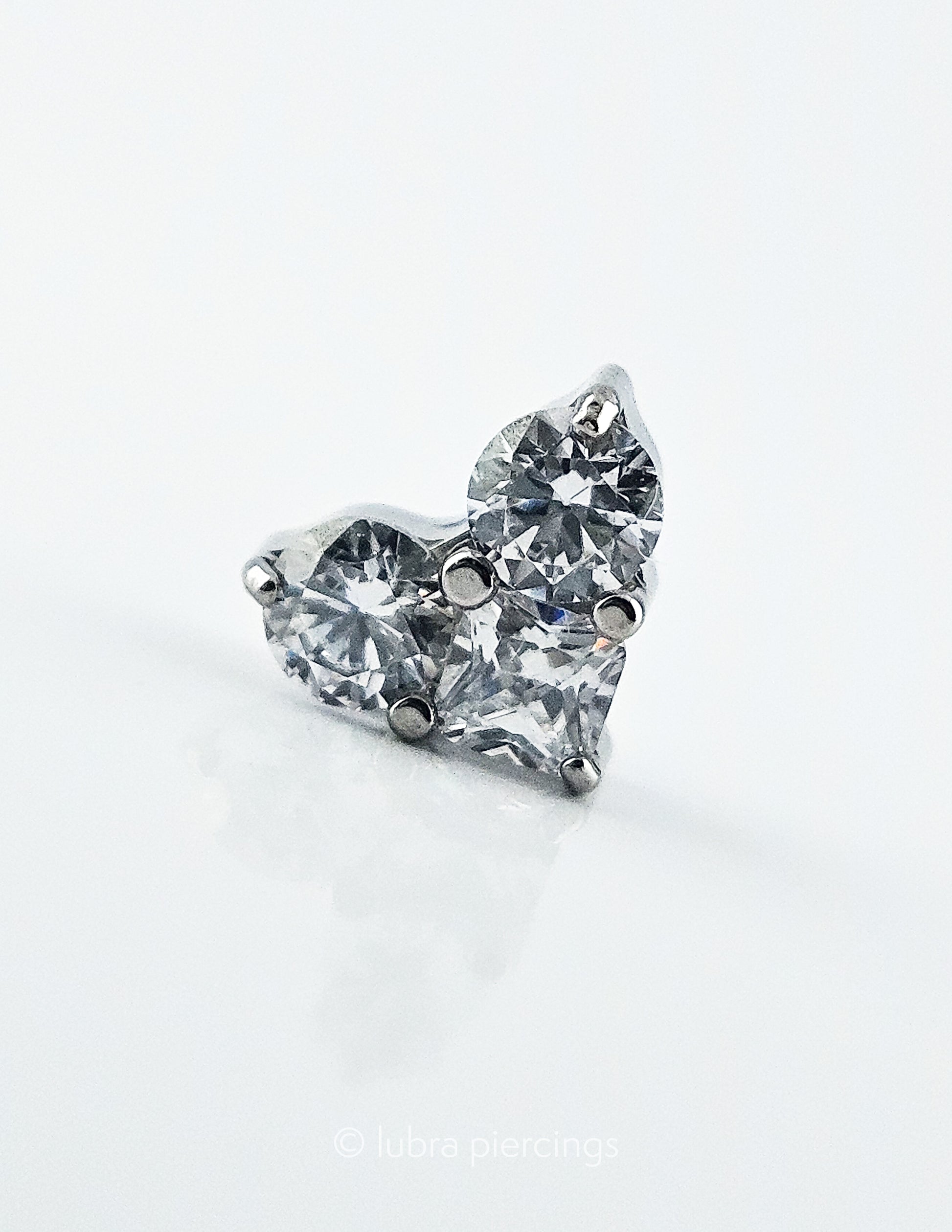 Piercing confeccionado em titânio ASTM F-136, com zircônias, sua forma de abertura é por rosca interna.