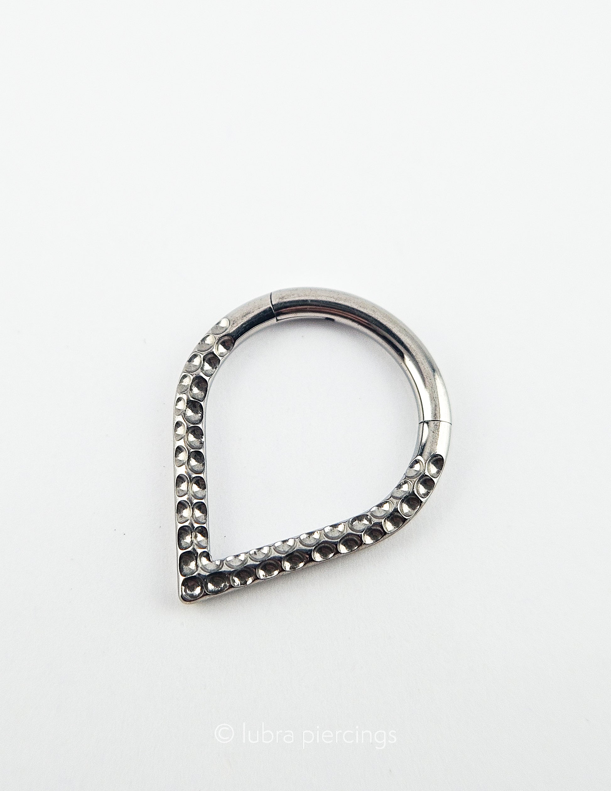 Segmento em forma de gota martelada fabricado em titânio ASTM F-136 com abertura do tipo clicker.