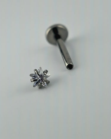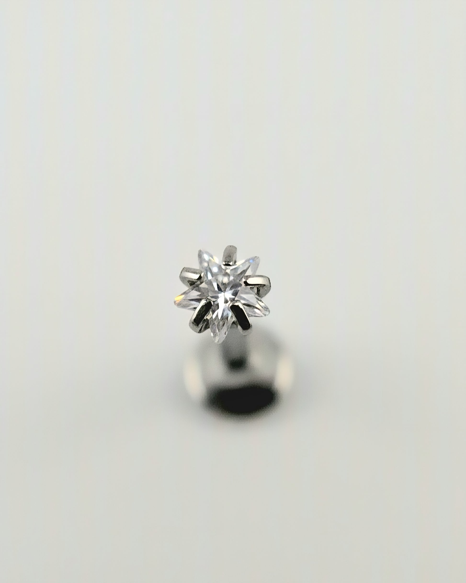 Piercing confeccionado em titânio ASTM F-136, com zircônia, sua forma de abertura é por rosca interna.