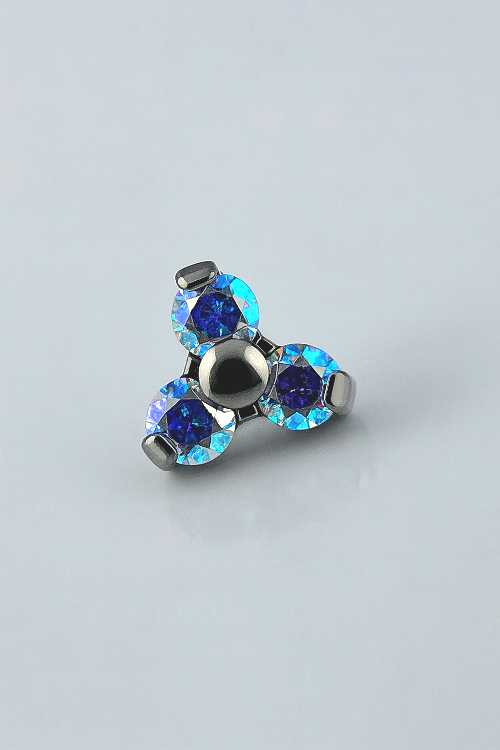 Piercing confeccionado em titânio ASTM F-136, com zircônias, sua forma de abertura é por rosca interna.